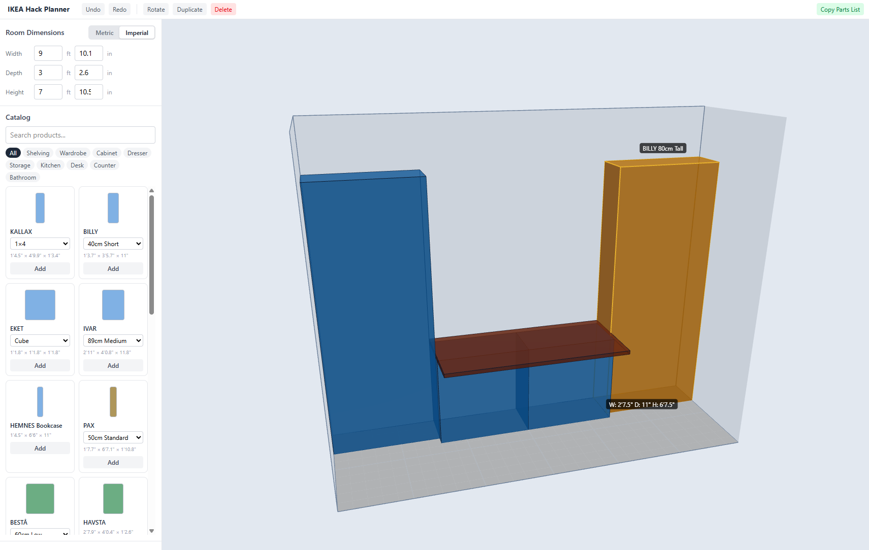 If you’ve spent any time in that community, you know the vibe - people turning flat-pack furniture and some trim into DIY built-in custom storage solutions, entertainment centers, etc. that looks like it cost ten times what it did. It’s genuinely clever but the planning process can be fidgety and IKEA’s room planner is pretty clearly not designed with this use case in mind.